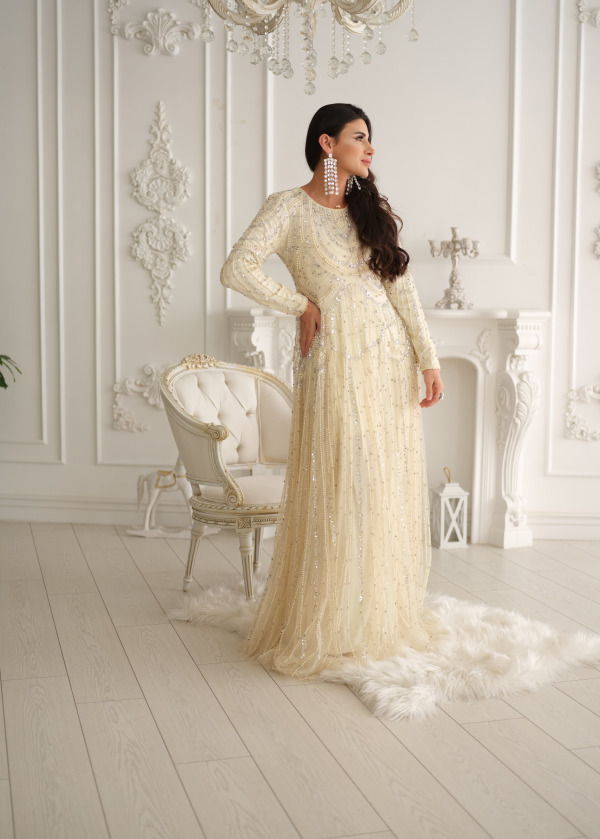 KREM İNCİLİ ABİYE